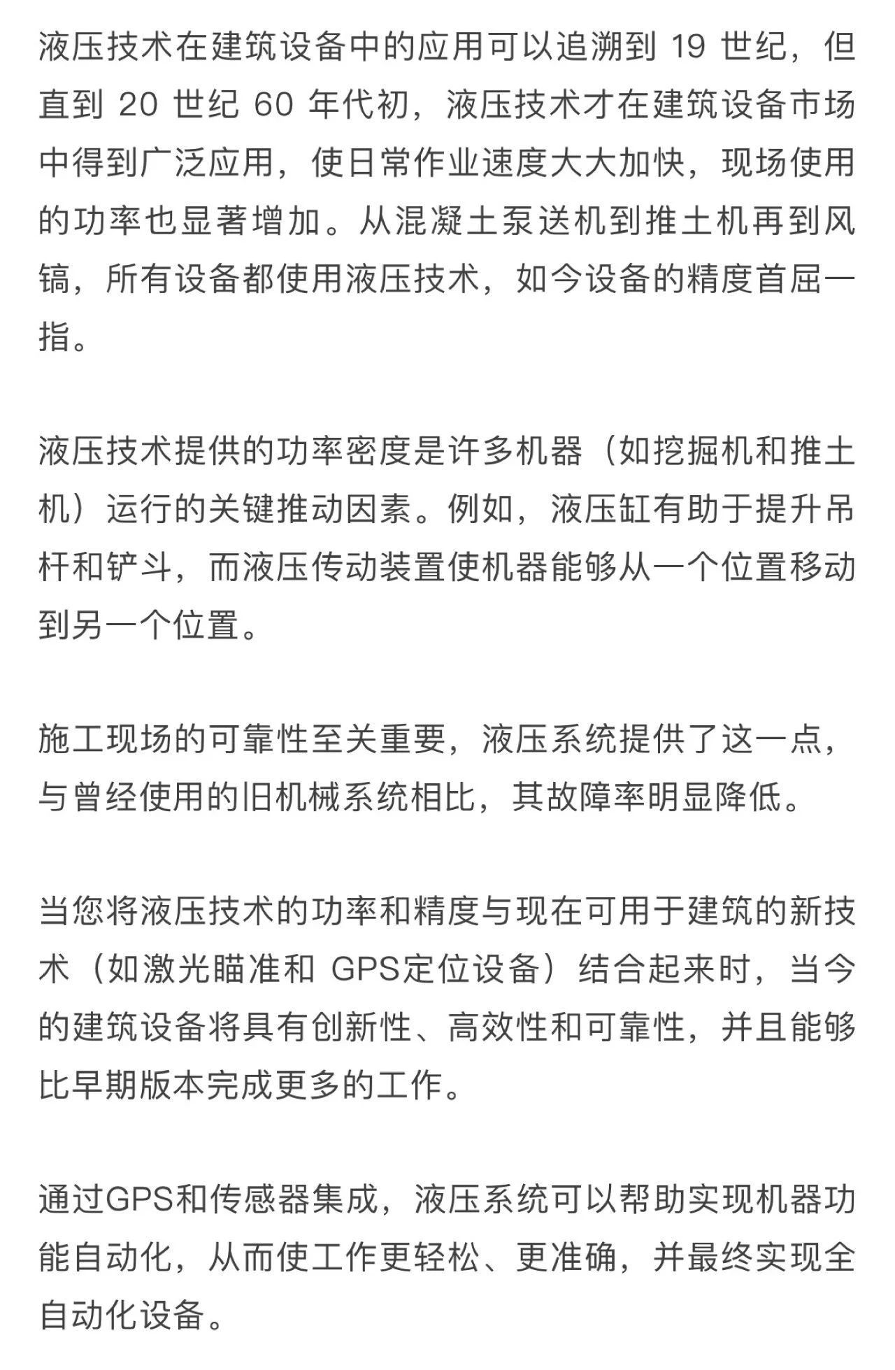 施工依賴于液壓系統(tǒng)的功率密度