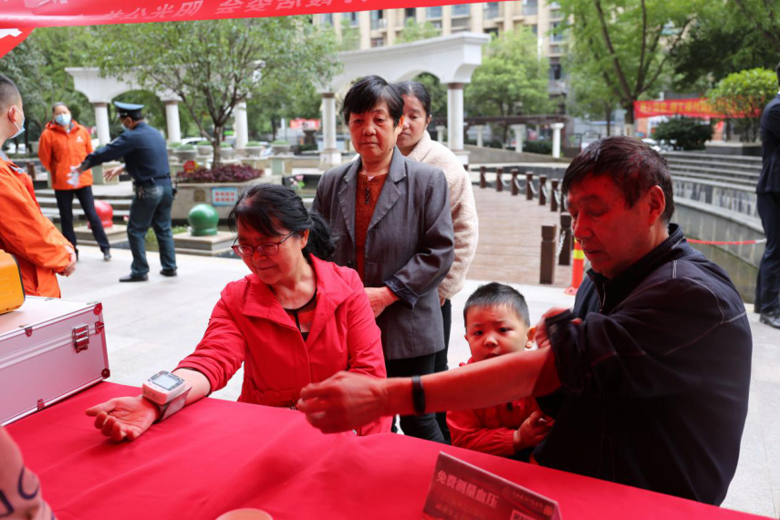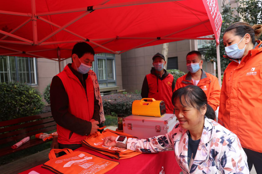 義診臺前,志愿者們熱情的接待每一位前來就診和咨詢的業(yè)主,醫(yī)護人員耐心的為他們答疑解惑,詳細講解常見病的預防診治注意事項,并免費為他們測量血壓、血脂、中醫(yī)把脈,讓業(yè)主們更多地了解自身身體狀況,提升衛(wèi)生防病意識。