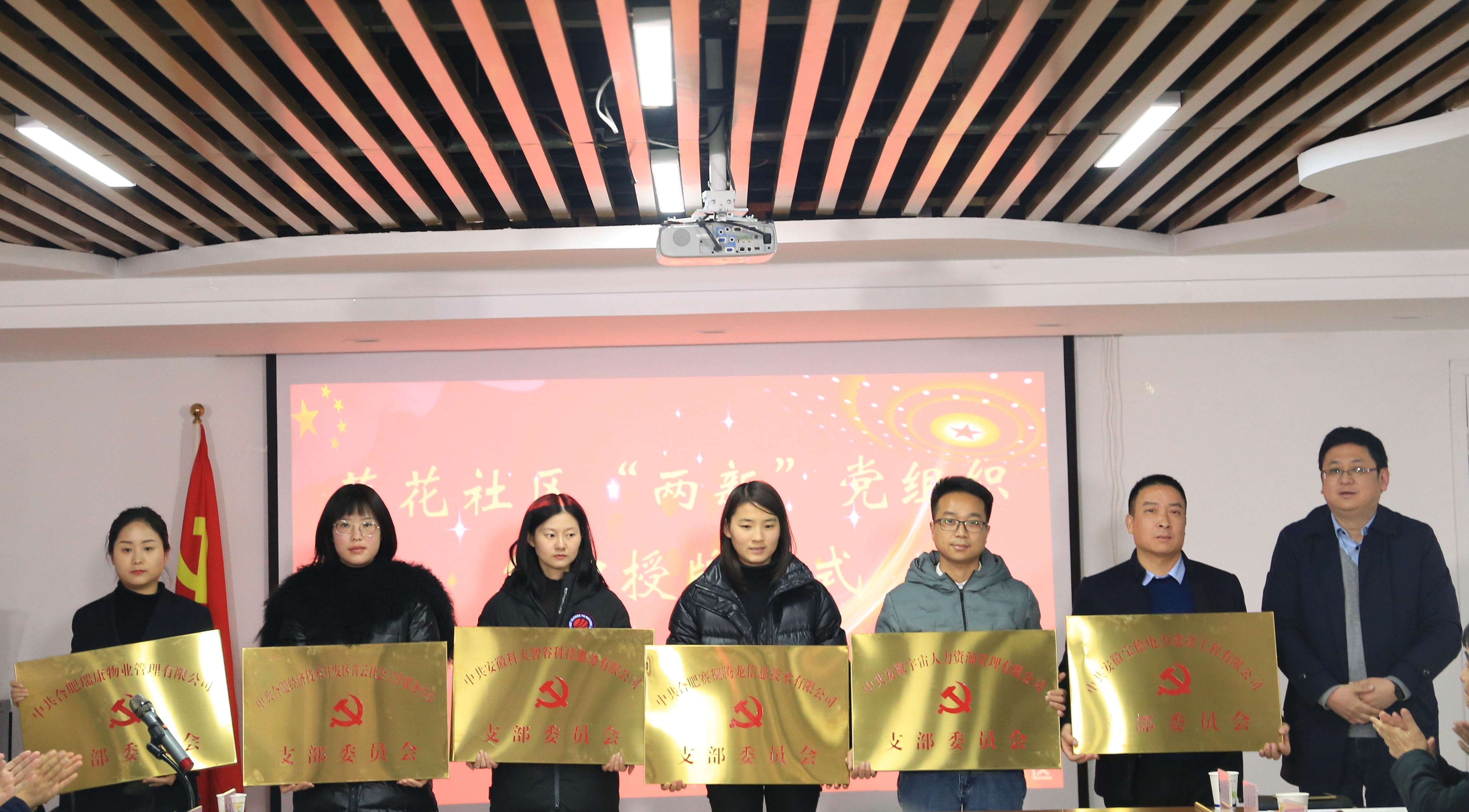 2020年12月24日下午,中共合肥瑞康物業(yè)管理有限公司支部委員會正式授牌,儀式在尚澤大都會五樓尚百黨群服務(wù)中心隆重舉行。合肥經(jīng)濟(jì)技術(shù)開發(fā)區(qū)黨工委委員、管委會副主任王亞斌,蓮花社區(qū)黨委書記郝鄭華,蓮花社區(qū)黨委副書記、主任劉子飛,集團(tuán)黨支部書記戴正春、副書記張艷等領(lǐng)導(dǎo)及各企業(yè)部分黨員出席了此次活動,蓮花社區(qū)黨委書記郝鄭華為瑞康物業(yè)等“兩新”黨組織授牌。