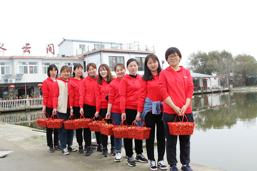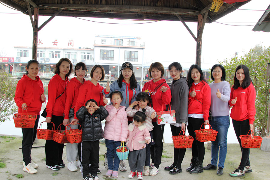 一路上,女同胞們歡聲笑語(yǔ),孩子們喜笑顏開。剛抵達(dá)大圩草莓采摘基地,大家便按捺不住激動(dòng)的心情,紛紛鉆進(jìn)大棚里,感受“水果皇后”散發(fā)出的清香芬芳。有忙著與孩子一起體驗(yàn)田園采摘的樂(lè)趣,也有忙著品嘗香甜可口的味道,還有忙著與鮮紅嬌嫩的草莓拍照留念,悠然自得,舒心愜意。小籃筐中紅艷艷的果實(shí),讓所有人盡享滿載而歸的歡樂(lè)。經(jīng)營(yíng)管理層領(lǐng)導(dǎo)有的參與到采摘活動(dòng)中,還有的在池塘邊垂釣,其樂(lè)融融。中午,大家還品嘗了獨(dú)具特色的農(nóng)家宴,美味贊不絕口。返回途中,眾人臉上紛紛流露出意猶未盡的感覺(jué)。