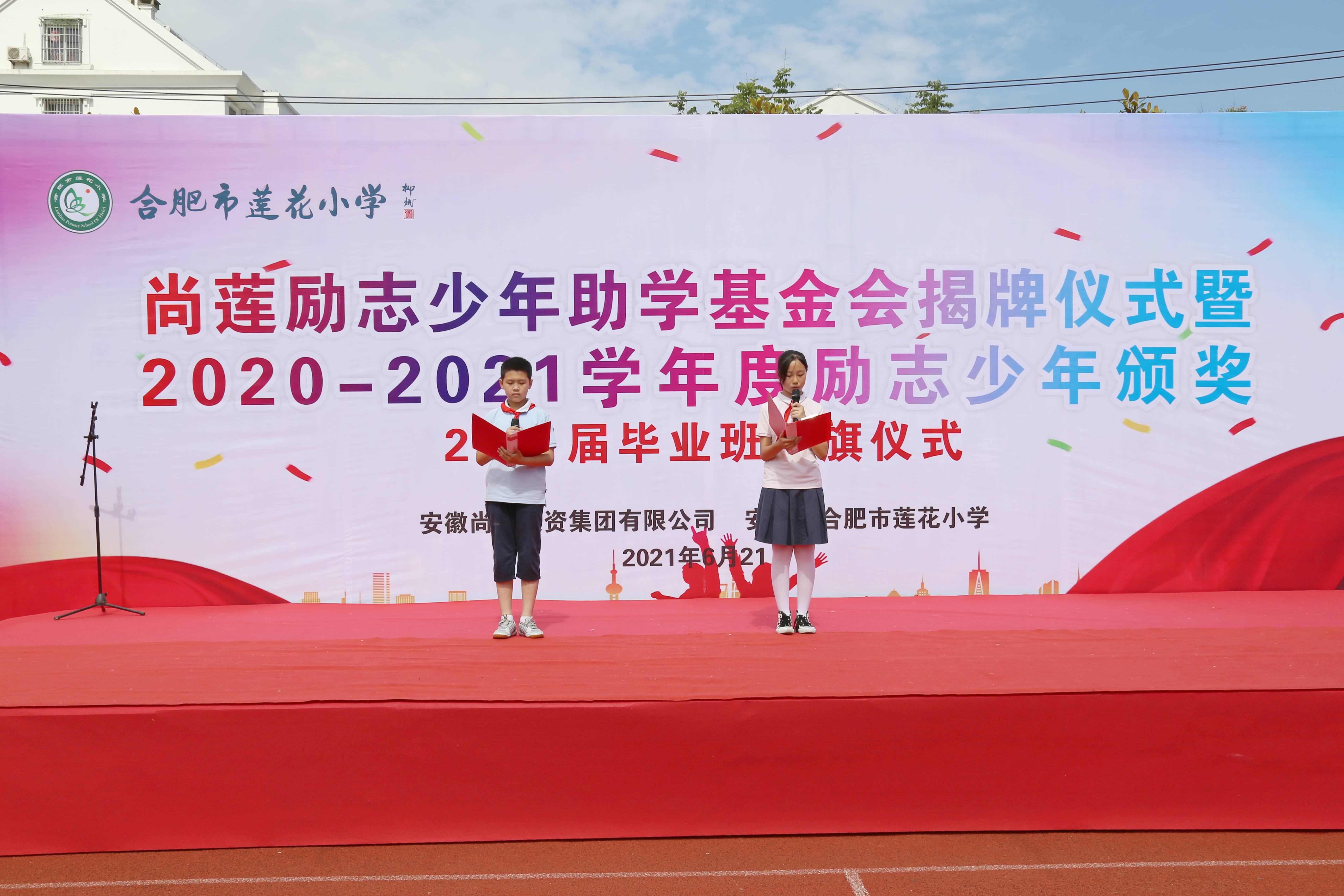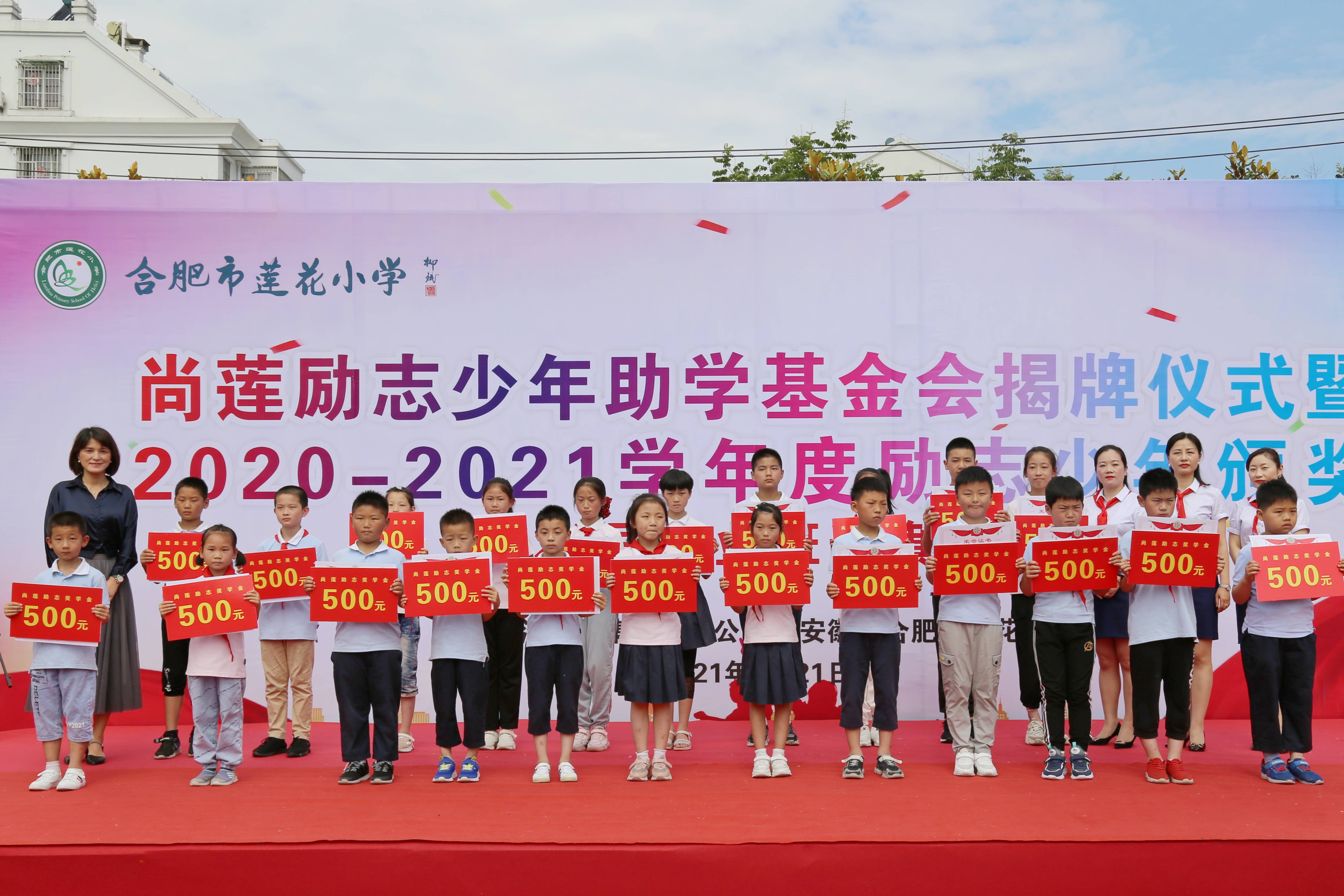 6月21日上午,尚蓮勵(lì)志少年助學(xué)基金會(huì)揭牌儀式暨2020-2021學(xué)年度勵(lì)志少年頒獎(jiǎng)典禮在合肥蓮花小學(xué)隆重舉行。尚蓮勵(lì)志少年助學(xué)基金會(huì)是尚澤集團(tuán)與合肥蓮花小學(xué)共同創(chuàng)建的,“尚”指尚澤集團(tuán),也有“高尚、崇尚”之意;“蓮”指蓮花小學(xué),也寓意蓮花的高貴品格。