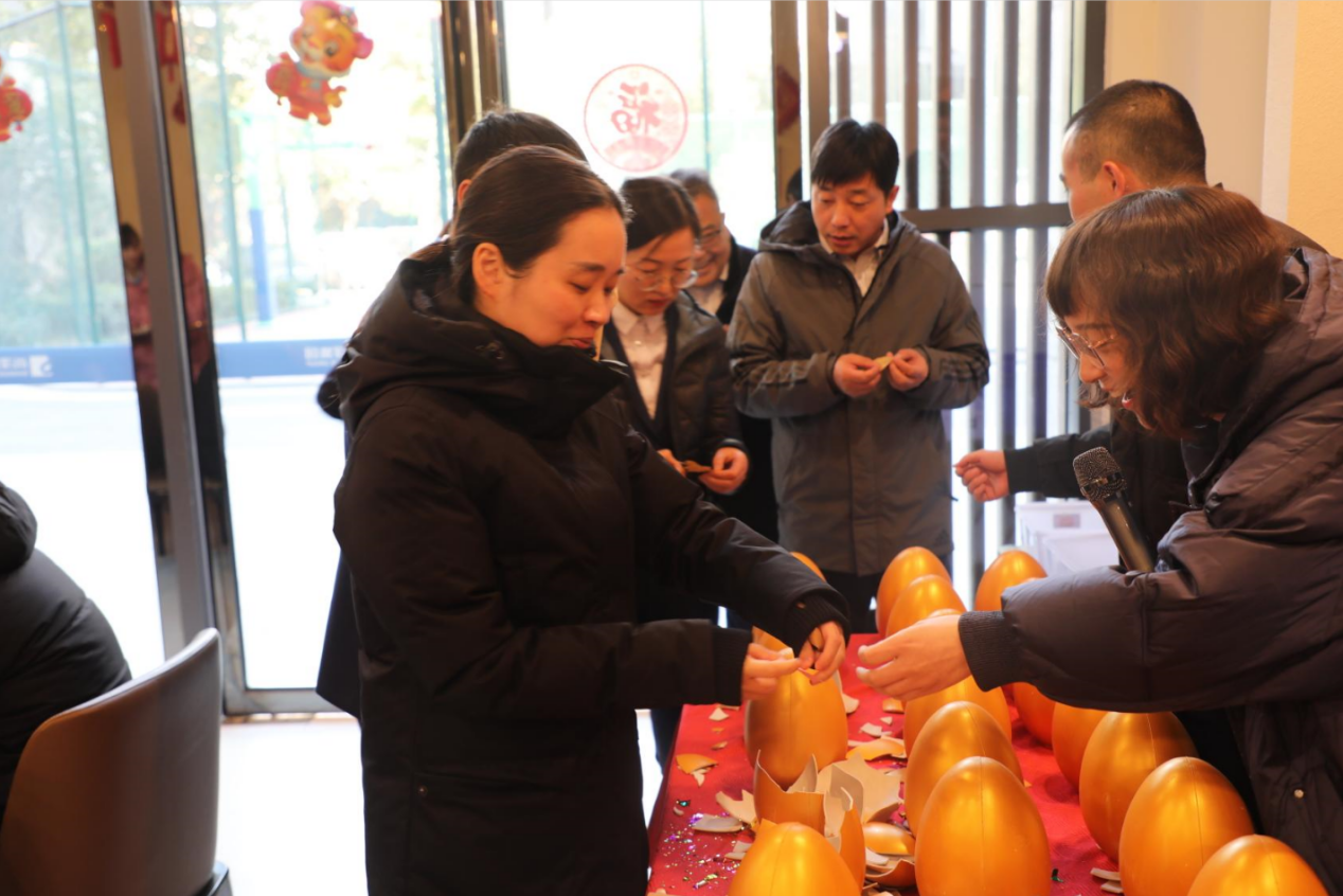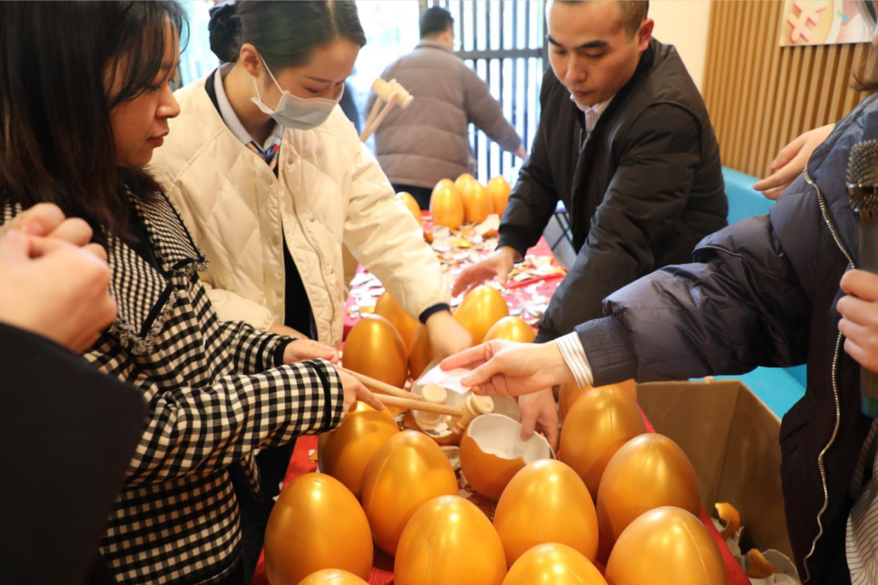 此次迎新活動(dòng)的高潮時(shí)刻必然是驚喜元“蛋”環(huán)節(jié)。企業(yè)管理中心的同事提前在金蛋中放置了各種驚喜,有奶茶、彩票、公仔、電影票等,當(dāng)然最讓人期待的還是現(xiàn)金紅包。紅包內(nèi)金額不等,都是寓意吉祥的數(shù)字。小伙伴們滿懷期待“敲”開(kāi)屬于自己的好運(yùn)。