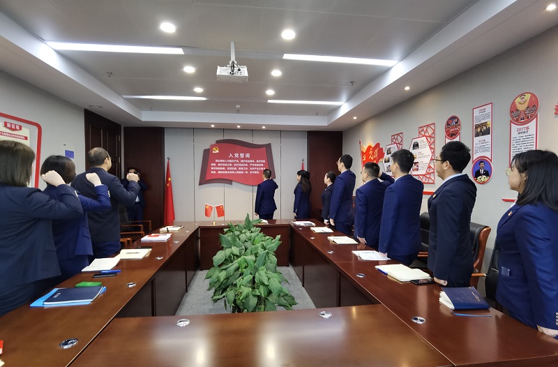 “我志愿加入中國(guó)共產(chǎn)黨,擁護(hù)黨的綱領(lǐng),遵守黨的章程……”,在宣誓領(lǐng)誓人黨支部書記戴正春的帶領(lǐng)下,兩名新黨員面向鮮紅黨旗,右手握拳高舉過肩,用整齊洪亮的誓言莊嚴(yán)宣誓,向黨和人民立下自己的錚錚誓言。全體黨員同志一起高舉右手,再次莊嚴(yán)宣誓,重溫入黨誓詞。