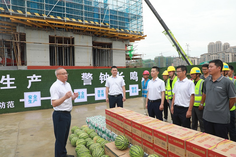 入伏以來,氣溫攀升。尚澤集團(tuán)一線員工們?nèi)詧?jiān)守崗位、辛勤付出,經(jīng)受著高溫的考驗(yàn)。為切實(shí)做好防暑降溫工作,保證員工身體健康及夏季安全生產(chǎn)工作的開展,7月14日,集團(tuán)總裁王軍和審計(jì)監(jiān)察委員會副主任戴正春分別帶隊(duì),前往項(xiàng)目建設(shè)現(xiàn)場、瑞康物業(yè)和琪瑞飲服,開展高溫慰問活動,為烈日下堅(jiān)守崗位的一線員工送去關(guān)愛和問候。