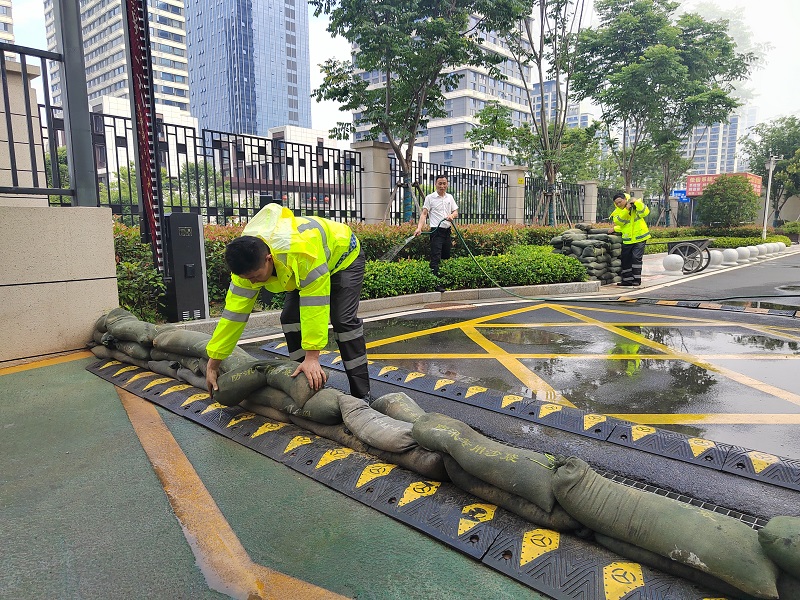 ①應急演練:各物業(yè)服務中心根據(jù)項目實際情況制定防汛應急預案并組織開展安全演練,模擬演練滲水險情,封堵車庫坡道、抽排水、防汛物資搬運等搶險場景,以演代練,筑牢防線。