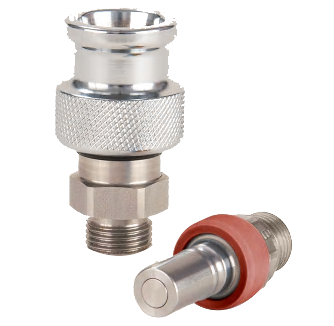 NSR 系列則是一款無溢流型快換接頭,它采用平齊端面閥芯設計,壓降損失 小,在連接或斷開時可減少溢流量和夾氣量。同時, 外部防塵套還能防止灰塵、 水等污染物在連接時進入管路內部。該系列接頭通過歐洲 DIN EN61373:1999 抗震動標準,適用于軌道交通行業,為制動系統的可靠性保駕護航。
