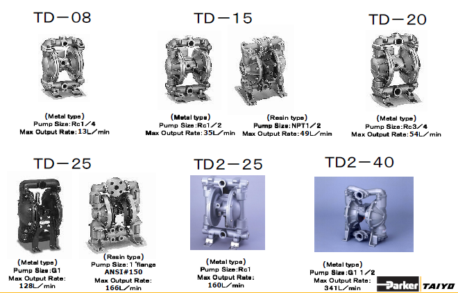 TAIYO隔膜泵的主要特性有:1、防爆認證2、可承受過載3、出口壓力及流量易于調節4、耐腐蝕性強5、選用不同密封材料,可傳輸多種介質6、可傳輸粘性介質7、易于維修 8、長壽命膜片和長壽命氣動閥