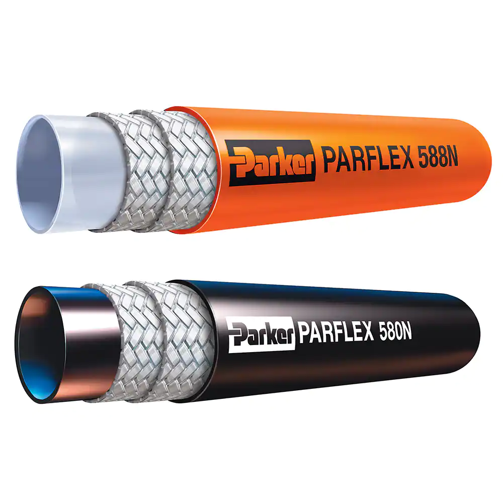 派克580N/H580N/588N高壓軟管符合SAE 100R8標(biāo)準(zhǔn)要求,比常見(jiàn)的100R2橡膠液壓軟管重量輕且外徑小,在需要更好柔韌性、流體兼容性以及表面持久耐磨性的應(yīng)用場(chǎng)合中能替換100R2橡膠液壓管。該系列軟管采用高標(biāo)準(zhǔn)的設(shè)計(jì)理念,可以提供雙聯(lián)和多聯(lián)結(jié)構(gòu),在液壓和氣動(dòng)系統(tǒng)應(yīng)用中表現(xiàn)出卓越的產(chǎn)品性能。由于具有更優(yōu)良的產(chǎn)品特性,比如重量輕、柔韌能力更好,Parflex 580N/H580N/588N高壓軟管集中了諸多優(yōu)點(diǎn)于一身,適用于流體處理和工業(yè)氣動(dòng)市場(chǎng)。