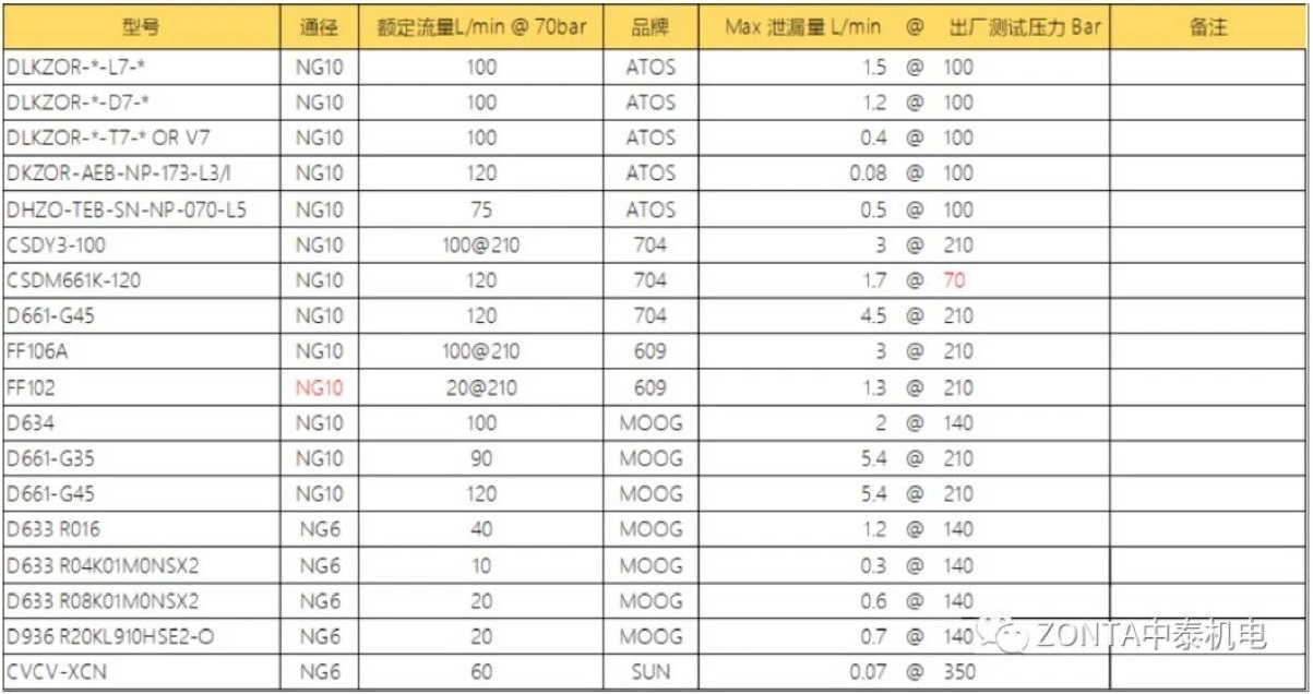 文末,對于一些伺服閥/比例的泄漏量也做了統計對比。
